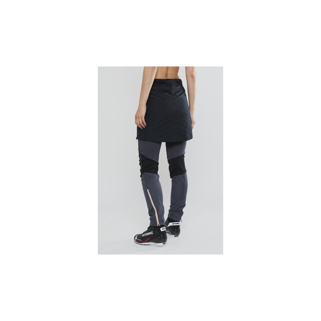 Dámská prošívaná větruodolná sukně CRAFT Storm Thermal vyrobená z recyklovaného materiálu, určená pro širokou škálu sportovních aktivit (běžky, běh) a na běžné nošení (přes legíny, džíny).