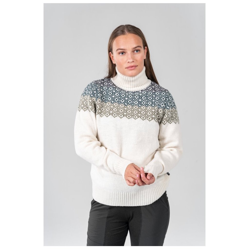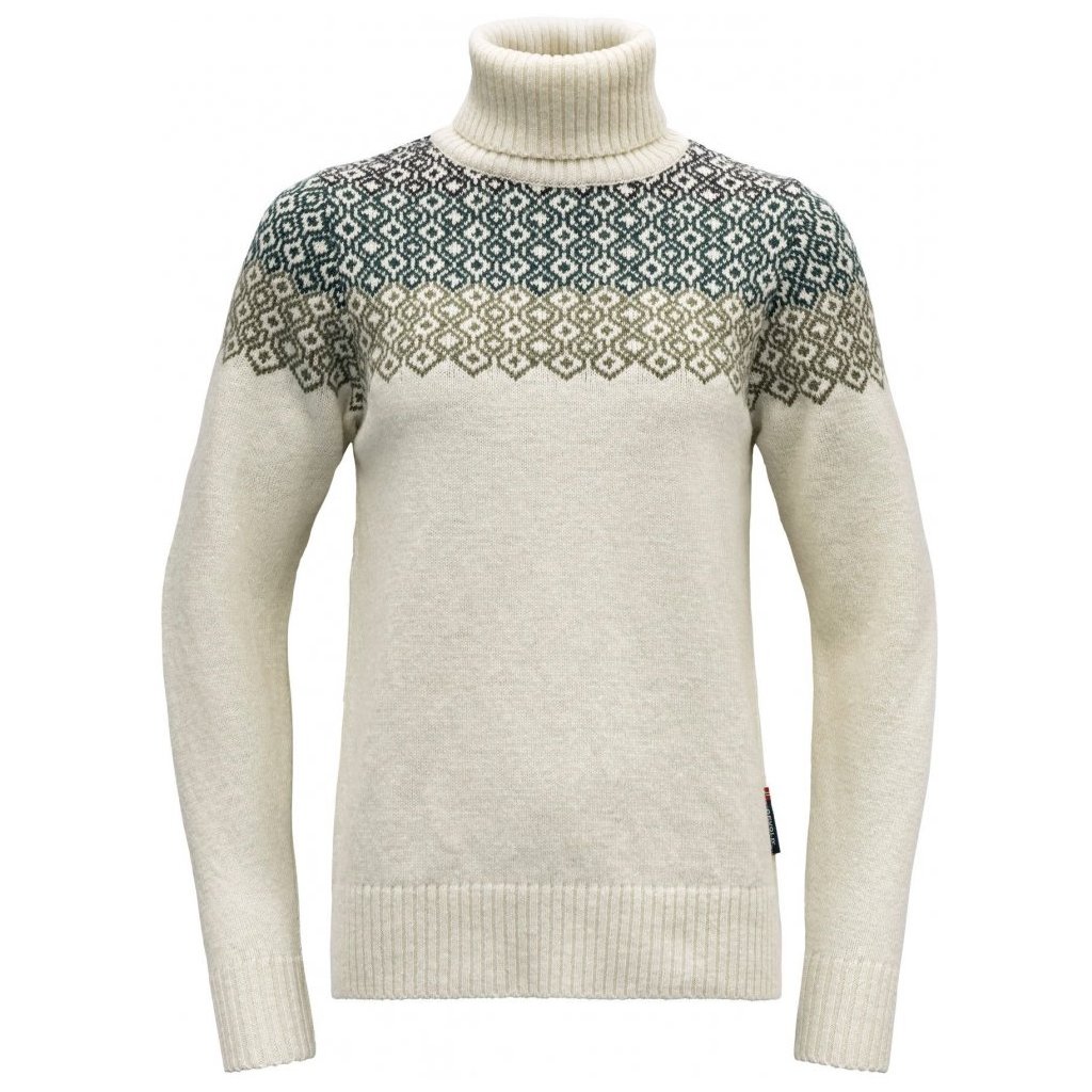 Krásný svetr, příjemný na těle z nové norské vlny. Vzor typický pro Devold je vpleten v horní části svetru. Tím je svetru dodán elegantní, ženský vzhled. Svetr je perfektní hřejivou střední vrstvou.